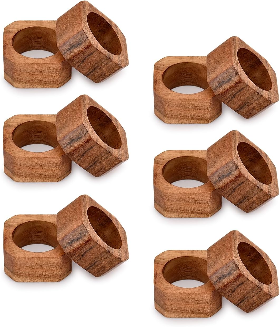 Napkin Ring Acacia Wood Napkin Rings Classic Everyday Use Thanksgiving, Christmas Napkin Rings Buckles,Festive Party Gift Farmhouse for Table Decorations (Set of 12, Brown)