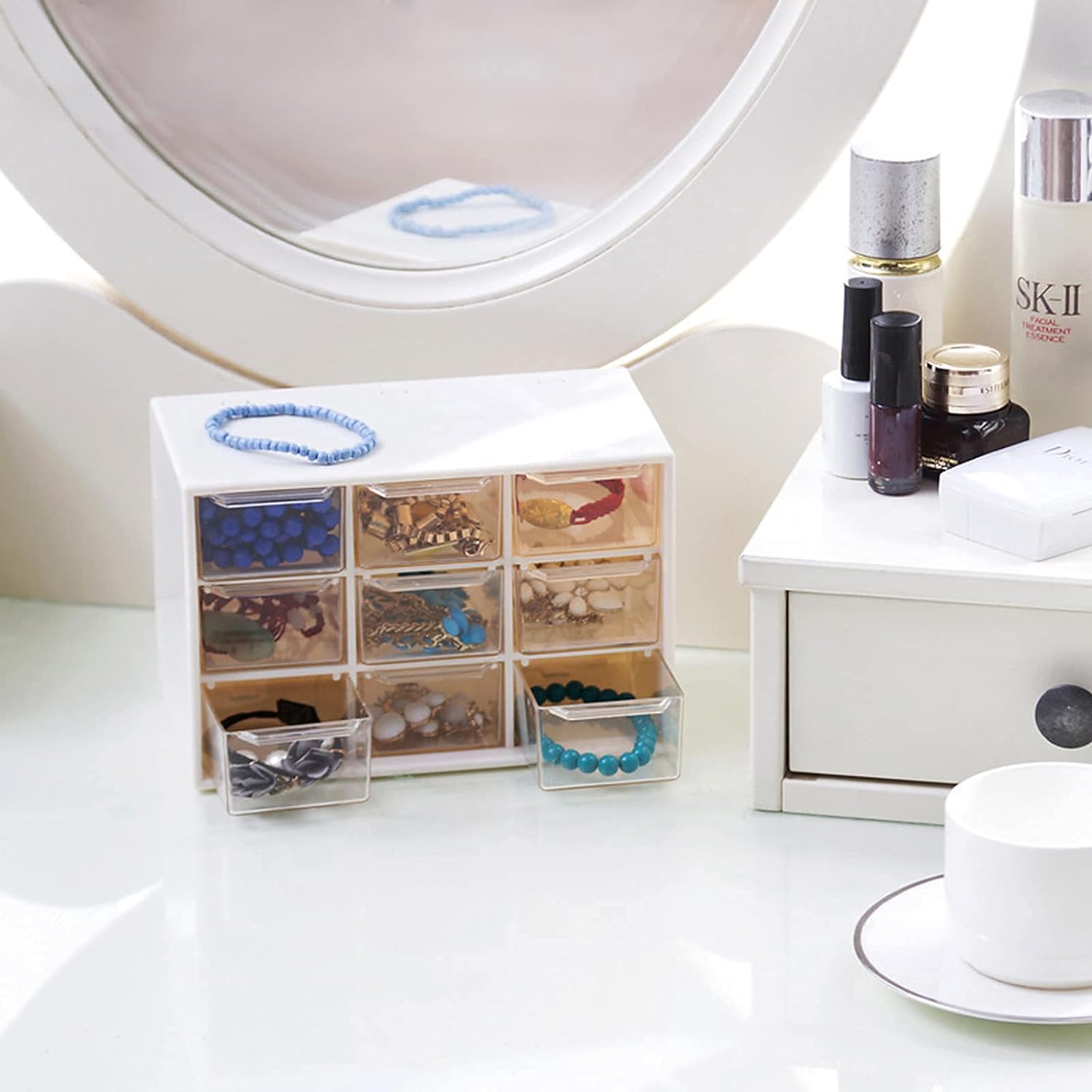Shoccolt Desktop Drawer Organizer Mini Plastic Office Supplies Desk Storage Jewelry Organizer Box 9 Removable Drawers Storage Box Makeup Drawers for Office & Home White