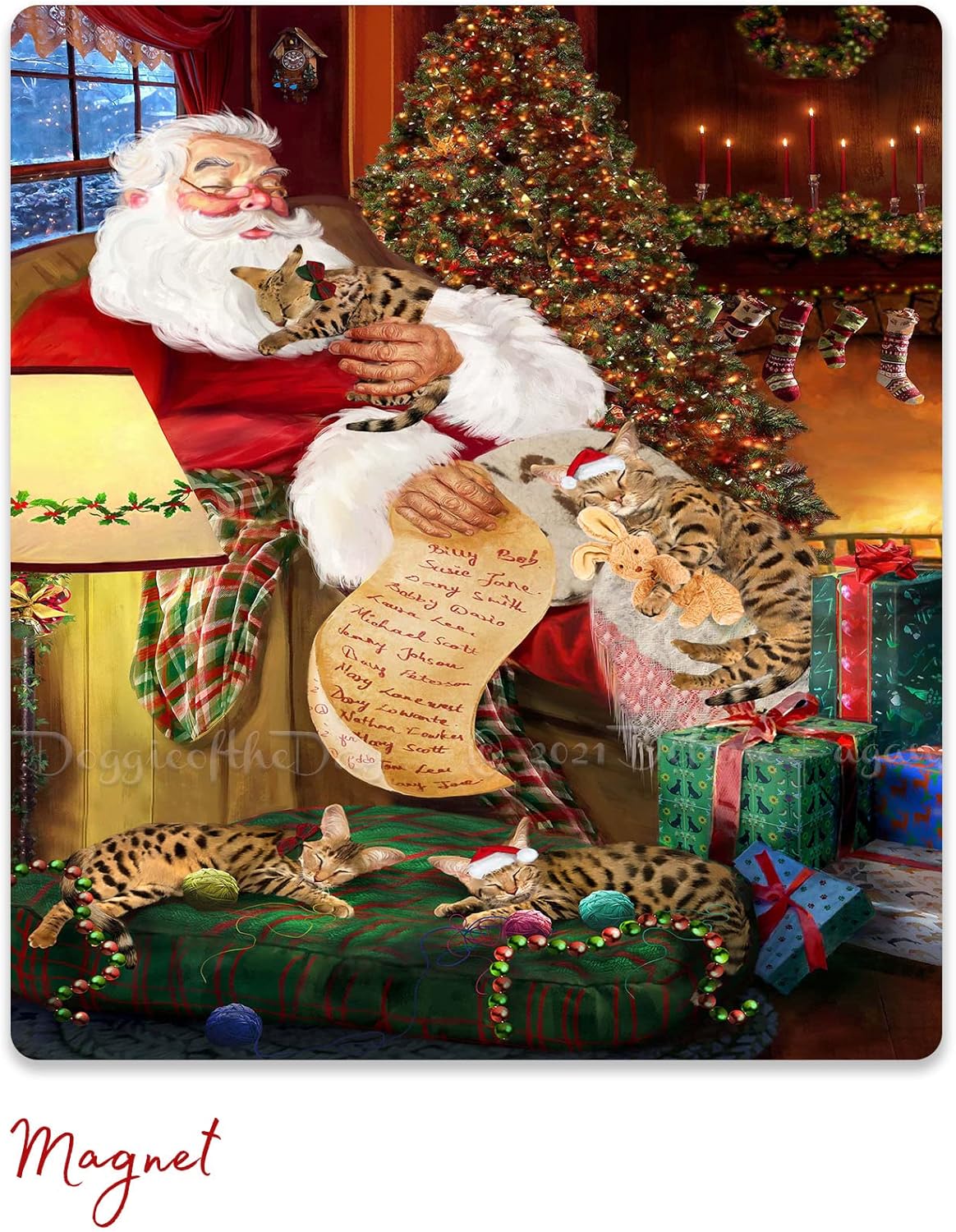 The Ultimate Dog Lover Christmas Basket Santa Sleeping with Savannah Cats Blanket, Pillow, Coasters, Magnet Coffee Mug and Ornament